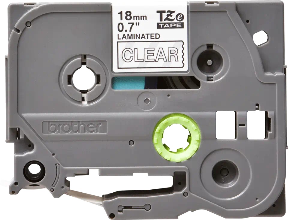 Banda laminata Original Brother White on Clear, TZE145, pentru D400|D450|E300|H300|18R|300|310|320|340|1300|1700|1750|1760|1800|1810|1830|1880|1890|1900|1910|1950|1960|2030|2040|2100|2110|ST5, 18mm, incl.TV 0 RON, „TZE145”