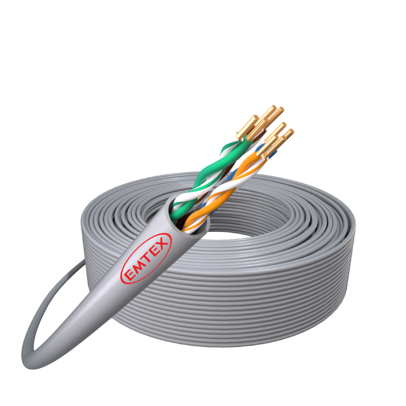 Cablu U/UTP, Cat.5e, Cupru, 24AWG/1, manta PVC, Eca, Fluke Pass, cutie 305m, gri – Emtex „EMT-UTP5E-24AWG.1-PVC-ECA”
