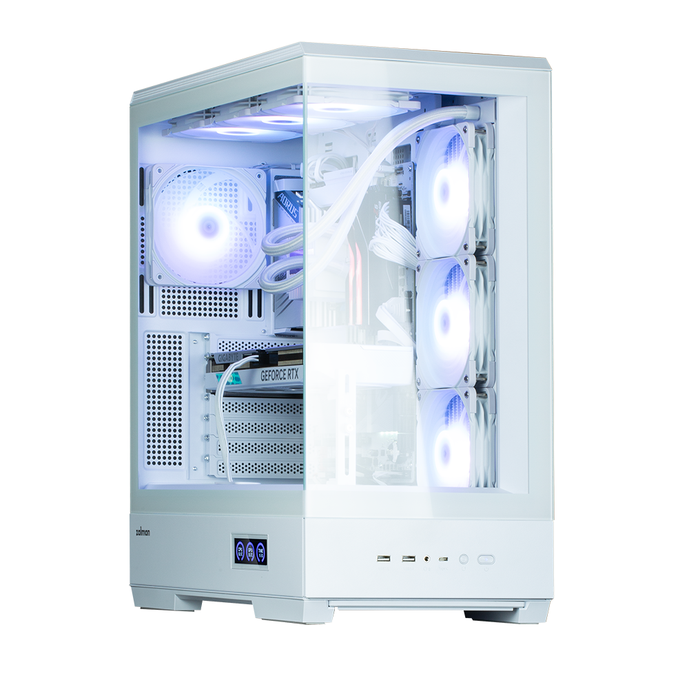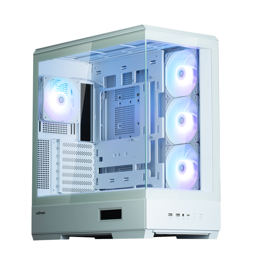 CARCASA Zalman „P50 DS”, middle tower, gaming, fara sursa, suporta 10xfan, 4xfan inclus, PSU shroud, afisaj electronic, USB Type-C x 1, USB 3.1 gen1 x 2, audio+mic, 7 sloturi expansiune, alb, „P50 DS White” (timbru verde 0.32lei)