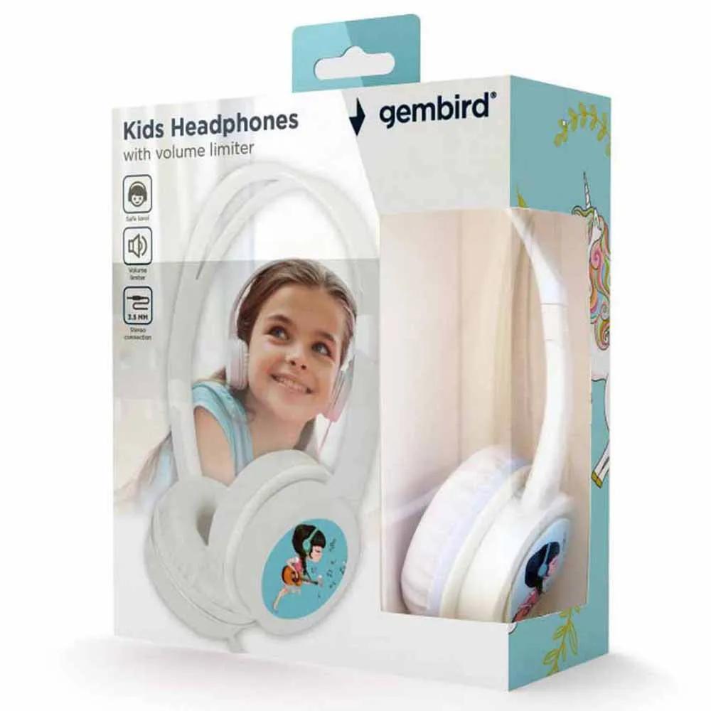 CASTI Gembird, cu fir, utilizare multimedia, conectare prin Jack 3.5 mm x 1, limitare volum pt. copii, alb, „MHP-JR-W”, (timbru verde 0.8 lei)