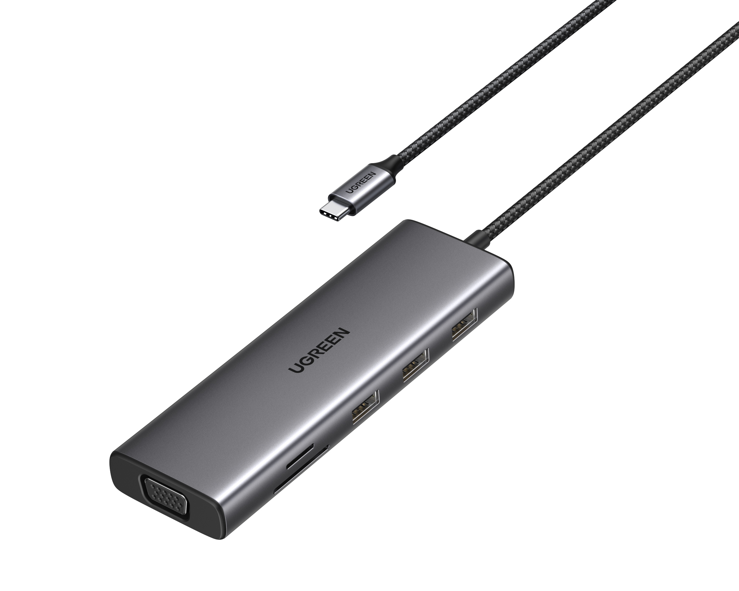 DOCKING Station Ugreen, „CM498” conec PC USB Type-C, HDMI(4K@30Hz), VGA, 3xUSB-A3.0, Gigabit RJ45, card reader SD/TF, jack 3.5mm, PD(100W), aluminiu, gri „15601” (timbru verde 0.8 lei)