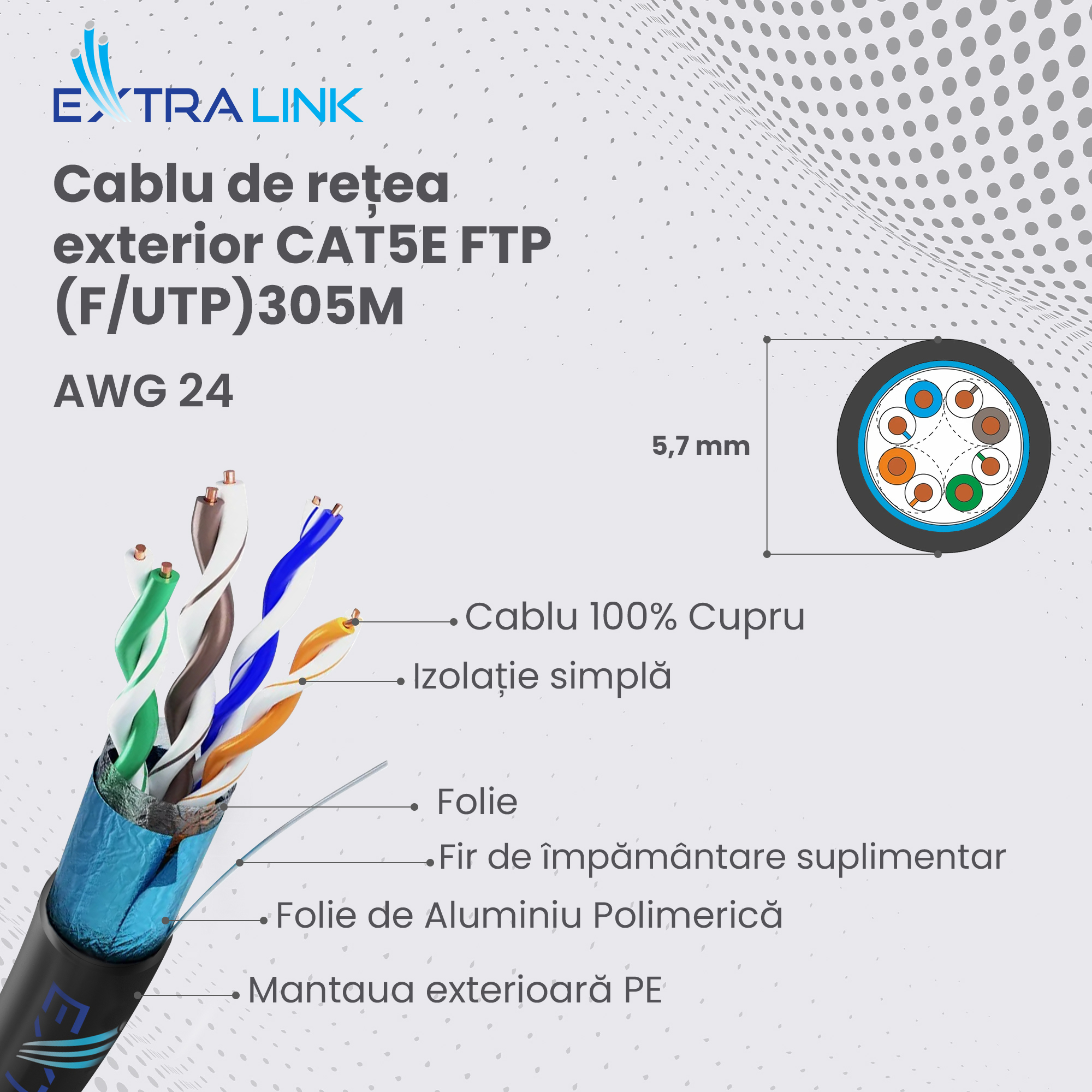Extralink cablu retea de exterior FTP Cat.5E full cupru 305M „EX.8710”