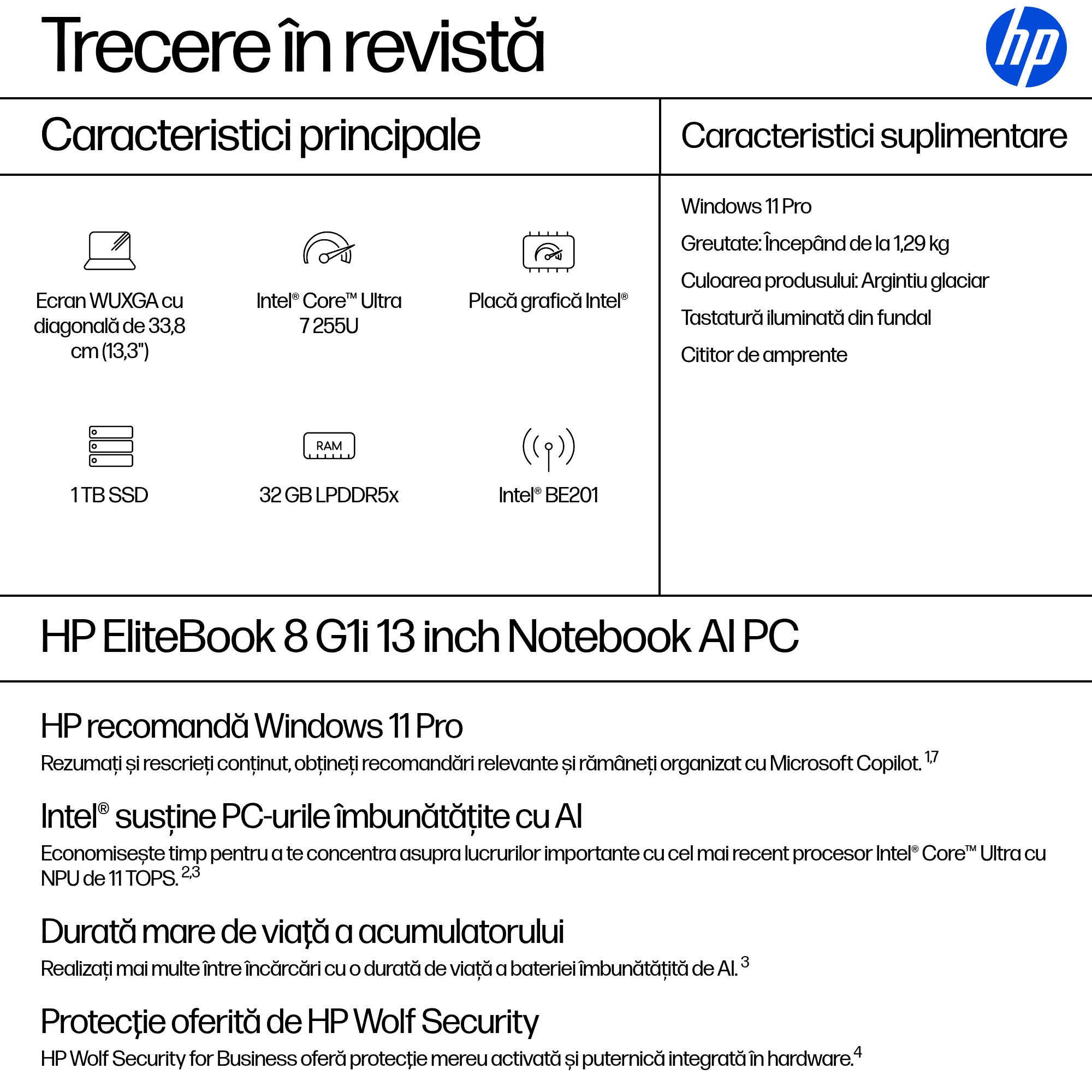 HP EB8G1i 13″ U7-255U 32 1T UMA W11P 3y „AD3G6ET” (timbru verde 3.5 lei)