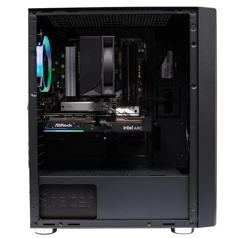 Sistem Destop PC Spacer Assault, AMD Ryzen 5 5500, 16 GB DDR4, 512 GB SSD, INTEL ARC B580 CHALLENGER 12GB OC, No Os, Negru, „SPACER-Assault-22”