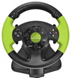 Volan cu pedale Esperanza High Octane EG104 XBOX 360 PS3 PC USB Negru/Verde „EG104” (timbru verde 0.8 lei)